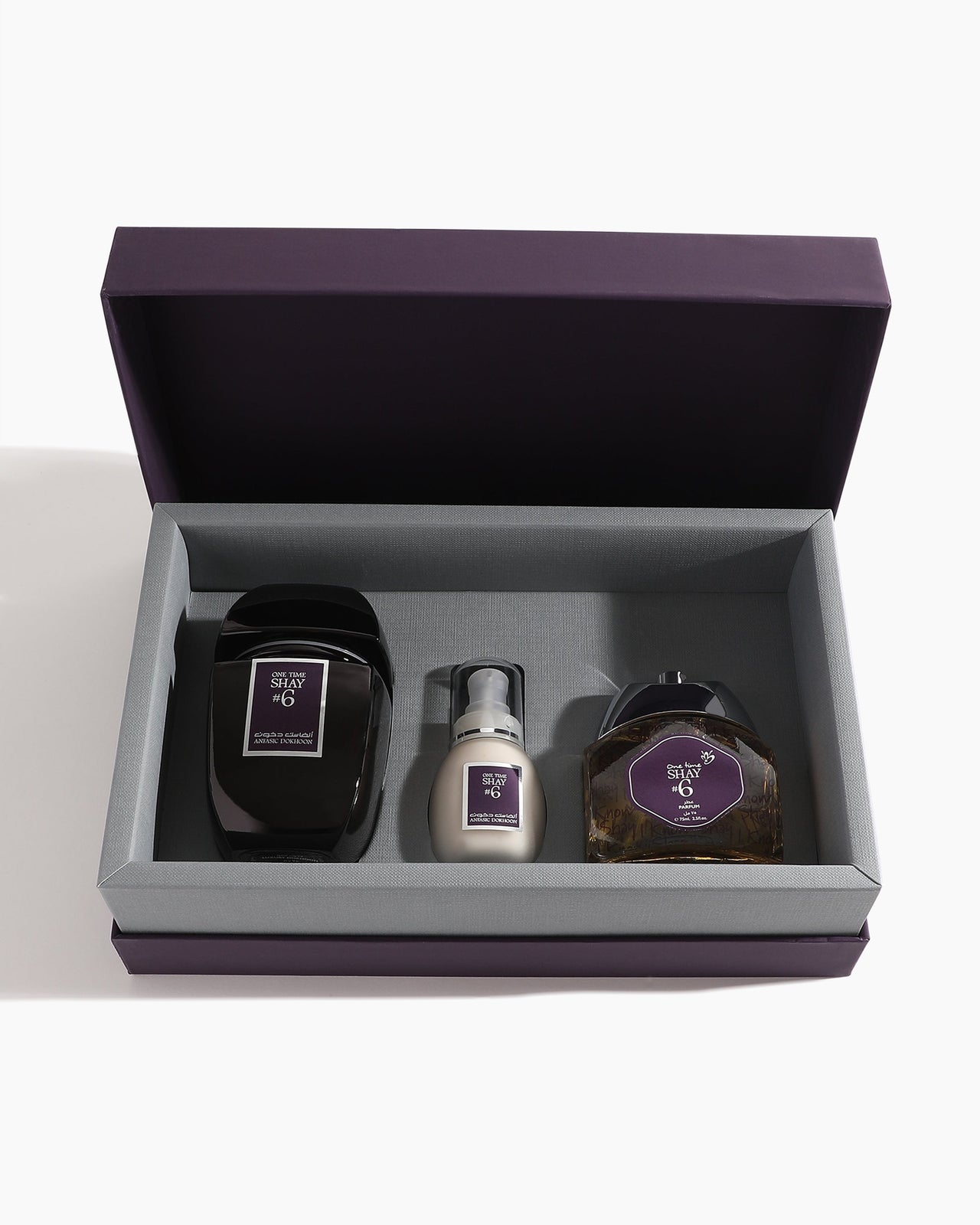 مجموعة هدايا "وان تايم شاي" رقم 6 هي طقوس عطرية متكاملة لمن يؤمنون بأن الرائحة بصمة مميزة. تجمع هذه المجموعة الثلاثية الحصرية عبر الإنترنت بين العطر الغني، واللوشن المخملي، والدخون الفاخر - كل منها مشبع بدفء أوراق التبغ الخضراء والترابية، والفانيليا، والعود. ناعمة وجريئة، شهية وعميقة، إنها تناغم زهري شرقي يدوم طويلاً بعد إهدائها. مغلفة بالمعنى، مصممة لتُبهر.